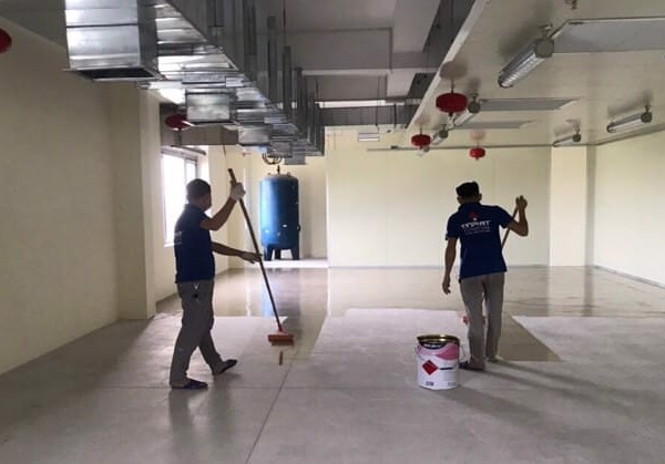 Khi đã xử lý xong các lỗi xảy ra của sàn nhà tiến hành đi vào sơn các lớp sơn lót lên sàn bên tông. Công đoạn này giúp tăng khả năng chống thấm của sàn nhà, nó rất quan trọng là khâu trung gian tạo nên sự bám dính giữa lớp sơn và lớp bê tông.