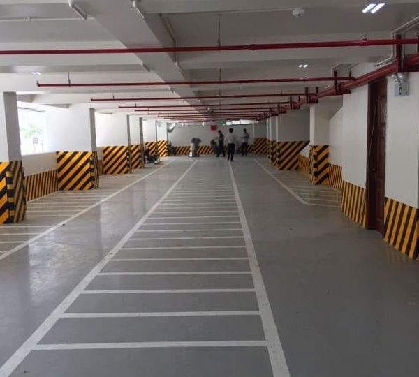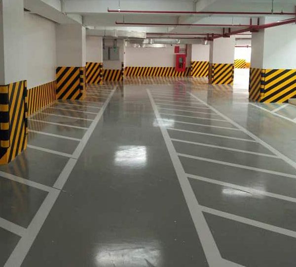 Tầng hầm là nơi có độ ẩm cao, chịu nhiều tác động của của xe cộ di chuyển thường xuyên dễ gây sụt lún, hư hỏng. Để khắc phục tình trạng này các chủ đầu tư đã sử dụng giải pháp thi công sơn epoxy nhằm bảo vệ và gia cố bề mặt sàn bê tông, tăng độ cứng, tăng ma sát, chống trơn trượt nền tầng hầm, nhất là ở những khu vực ram dốc.