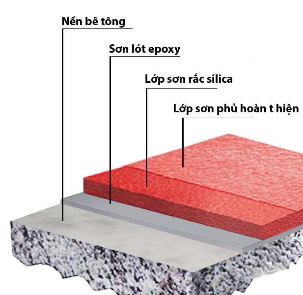 các lớp trong quá trình chống trơn trượt của sơn epoxy